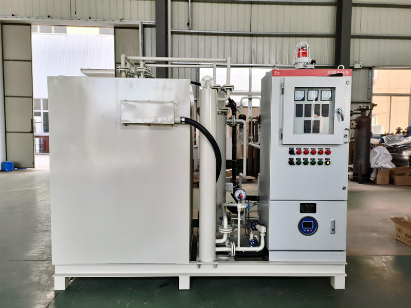 氨分解制氫裝置具有結構簡單、投資少、效率高等特點,再通過我公司生成的HBFC系列氣體純化裝置,可以獲得露點為-60℃,殘氨量為5ppm,氫氣量為99.9%的高純氣體。